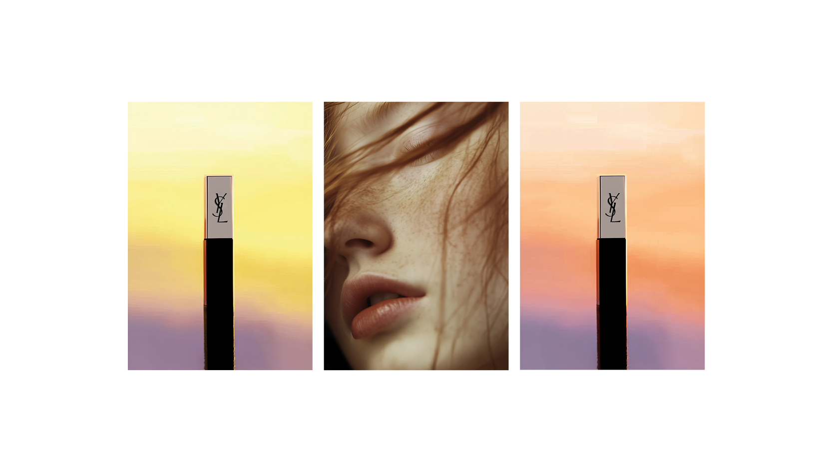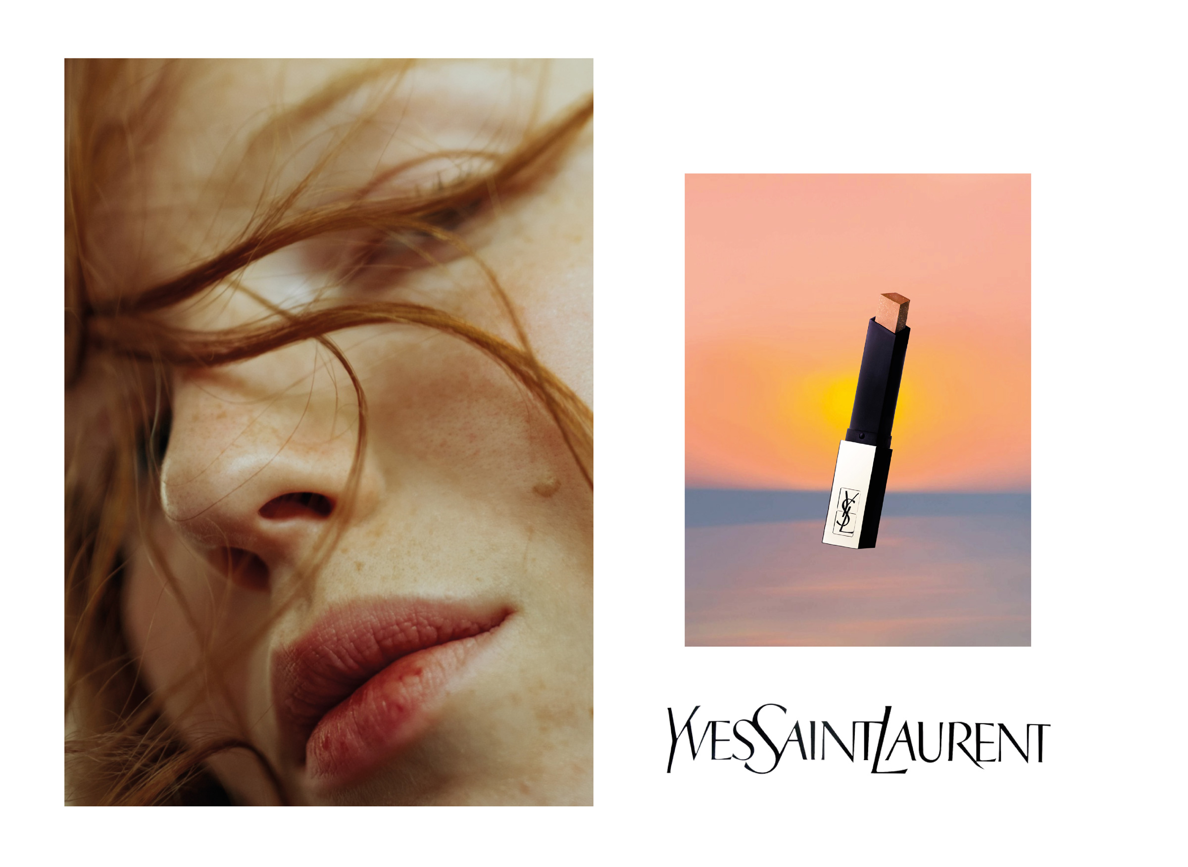 Conception de la campagne 360° pour le rouge à lèvres The Slim «Nude attitude» de Yves Saint Laurent.Photo-maquette : Paul Rousteau, Betina du Toit.